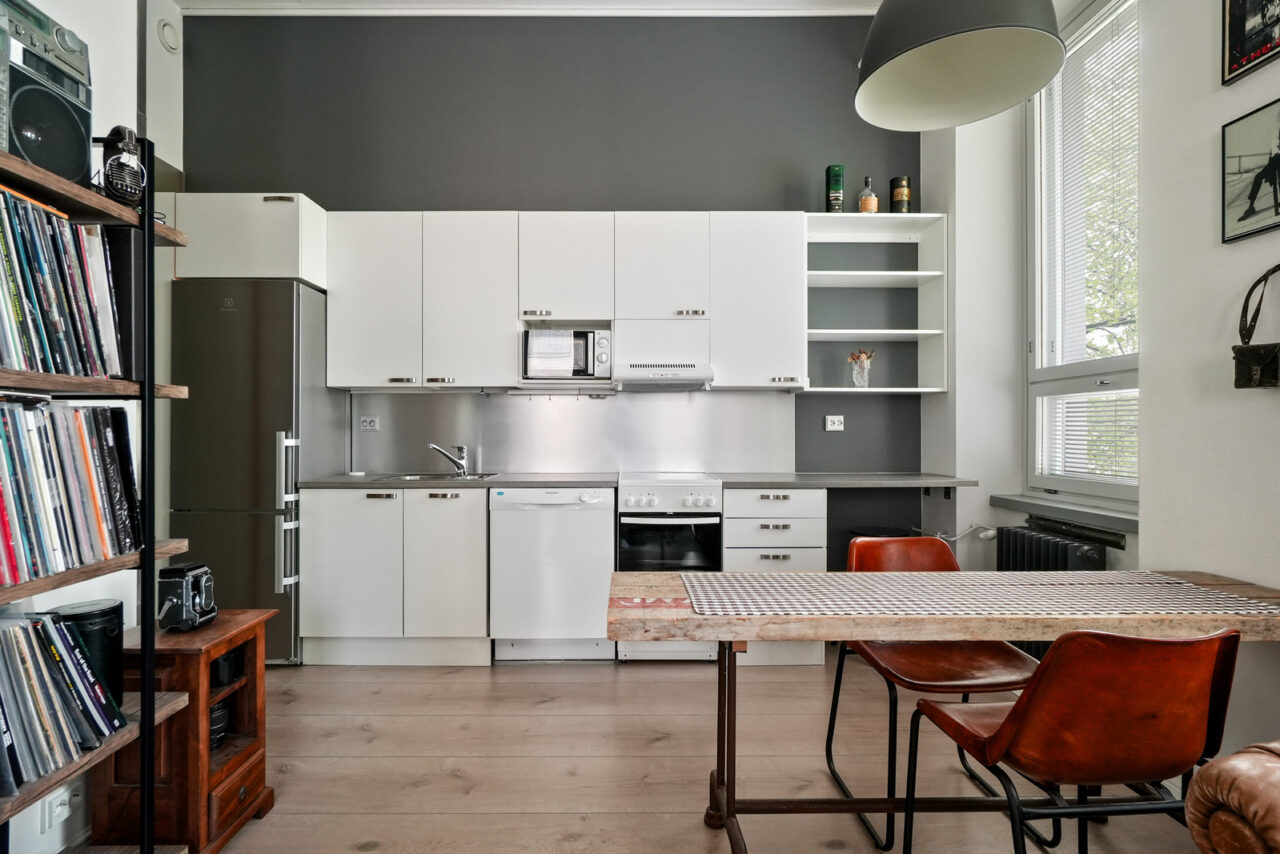 • Keittiön seinien materiaali: maalattu