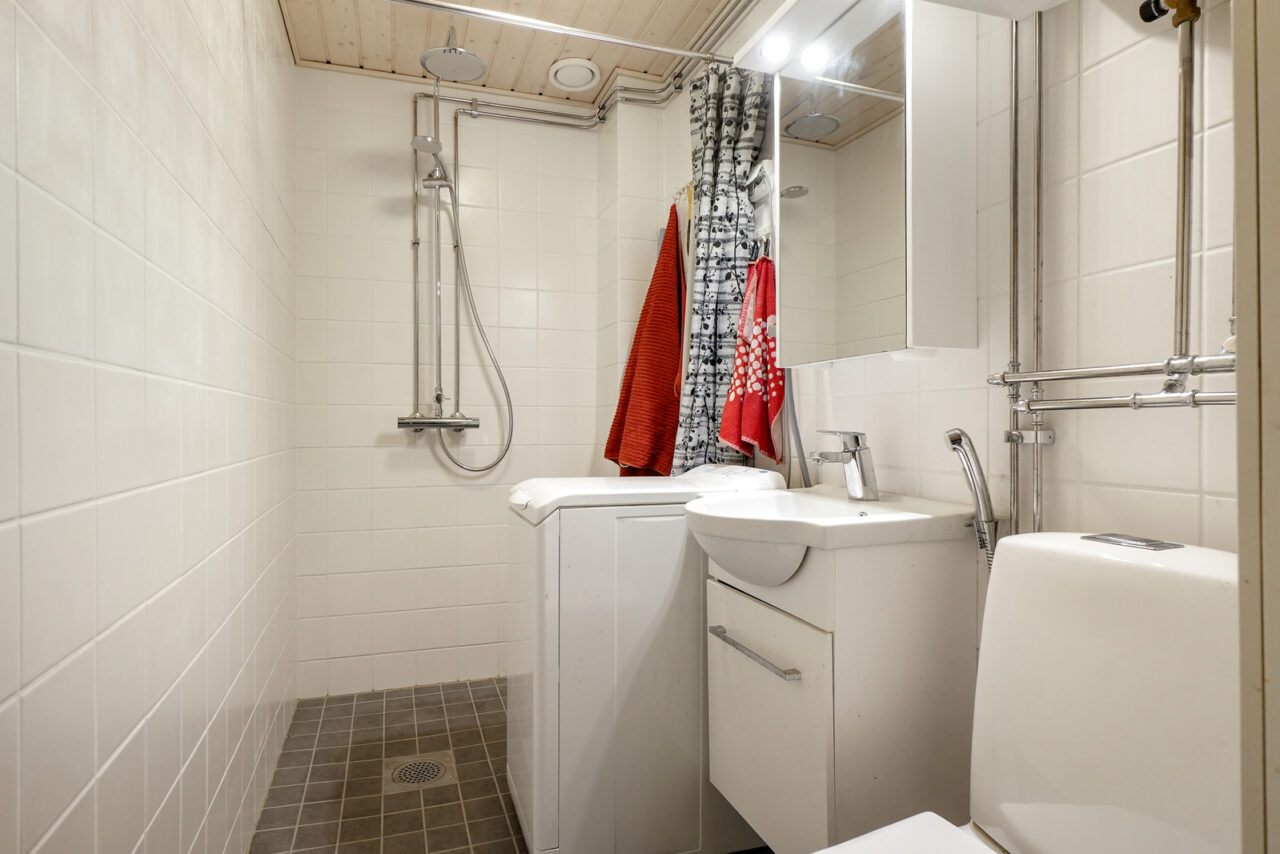 • Kylpyhuoneen varustus: pesukoneliitäntä