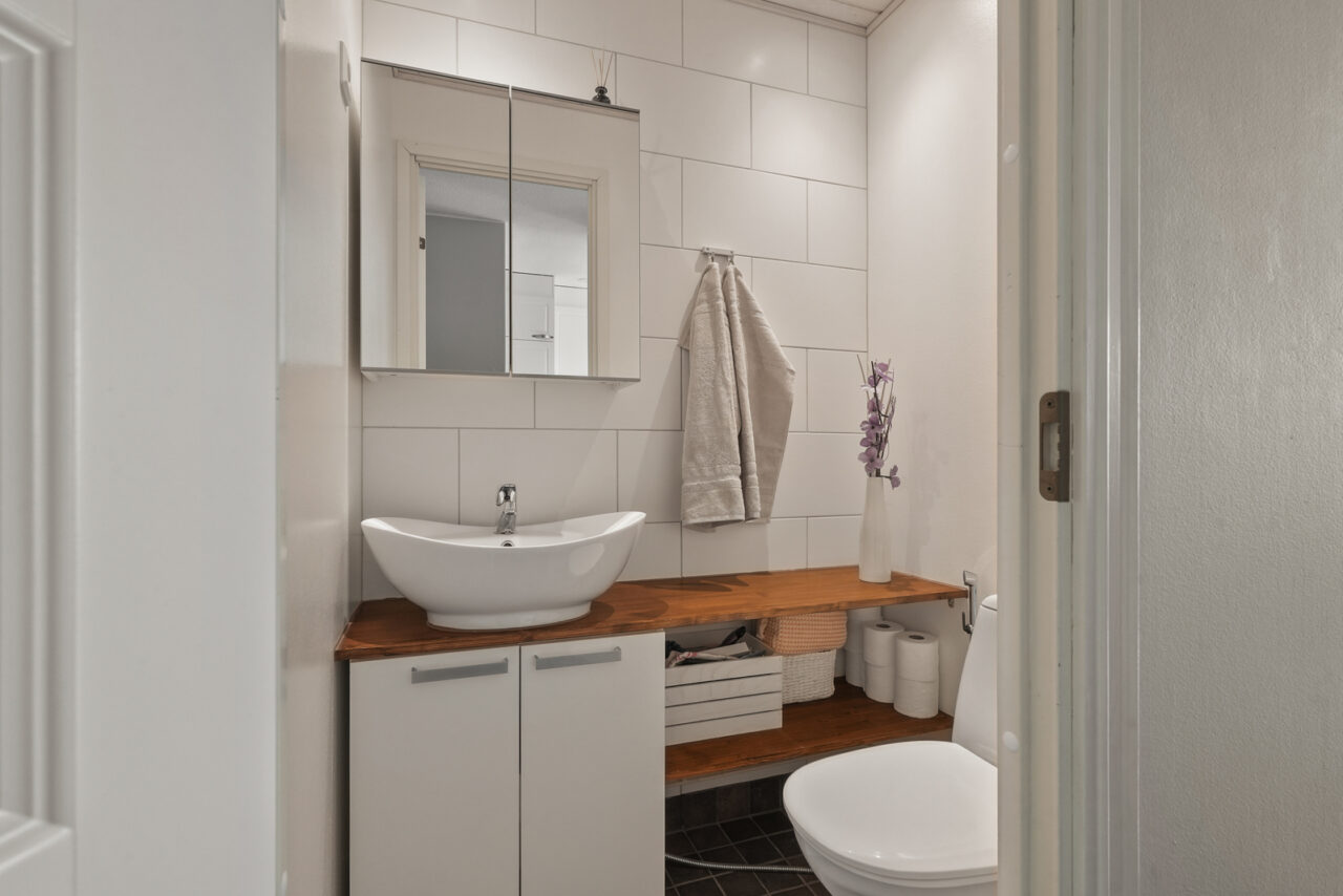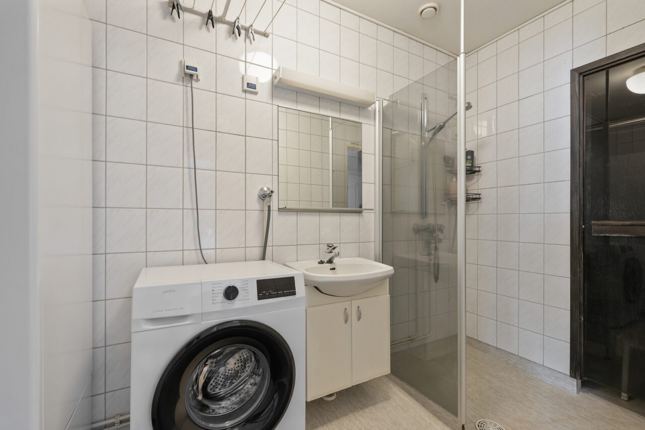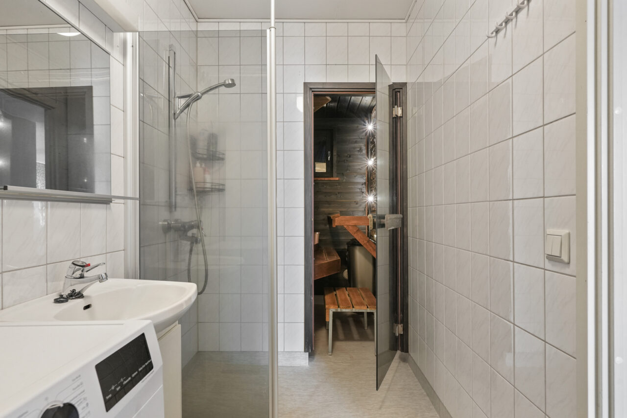 • Kylpyhuoneen seinämateriaali: kaakeli