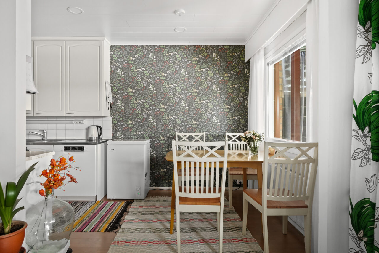 • Keittiön seinien materiaali: tapetti