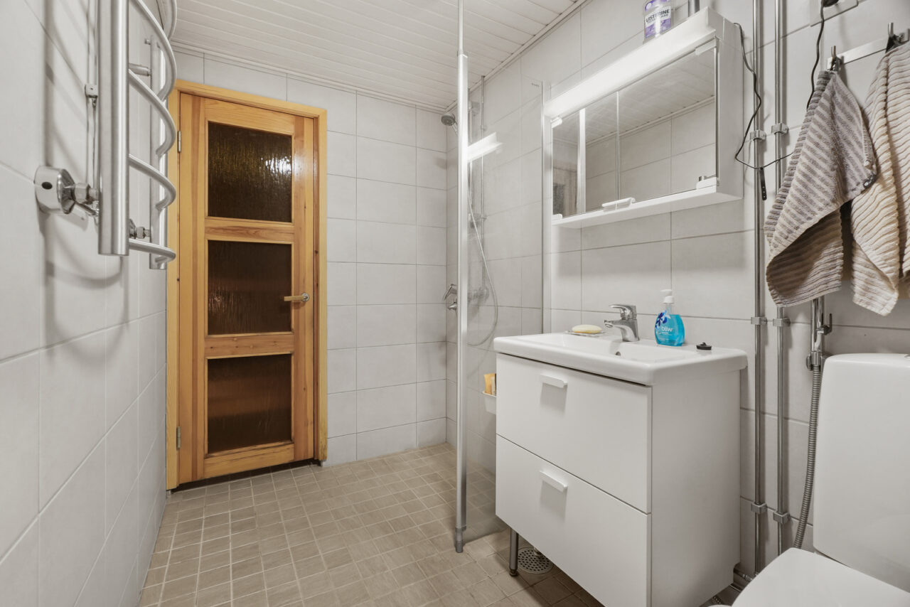 • Kylpyhuoneen seinämateriaali: kaakeli