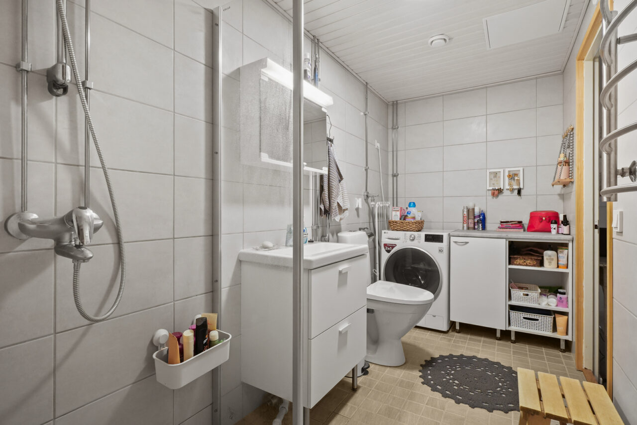• Pesutilojen kuvaus, lisätiedot ja varustusPesutilat remontoitu käyttövesiputkistoremontin yhteydessä.