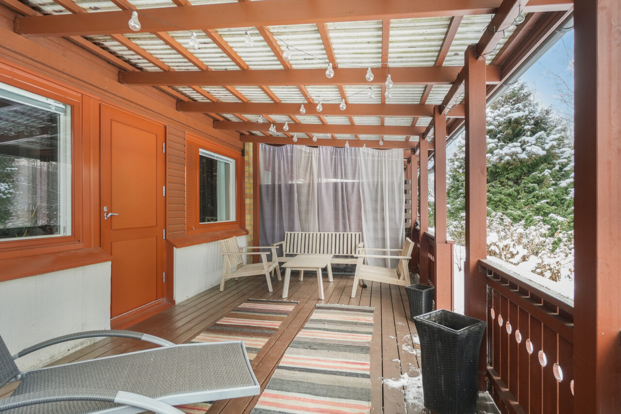 • Tehdyt korjauksetTerassin rakentaminen, lattiat hiottu ja sävytetty, eteisen kaapisto asennettu ja katot, valaistus ja katkaisijat uusittu.
