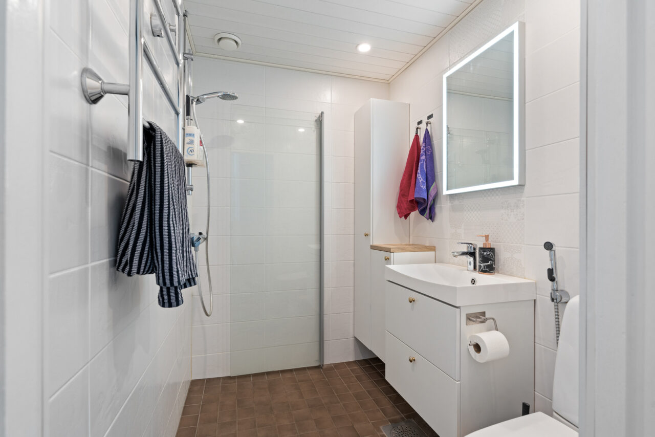 • Kylpyhuoneen seinämateriaali: kaakeli