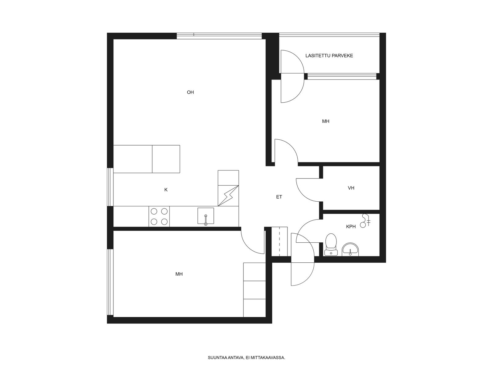 • Huoneistoselitelmä3h, k, ph/wc, vh, lasitettu parveke
