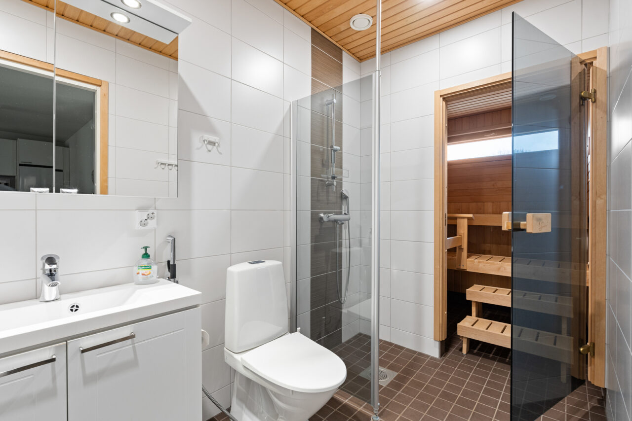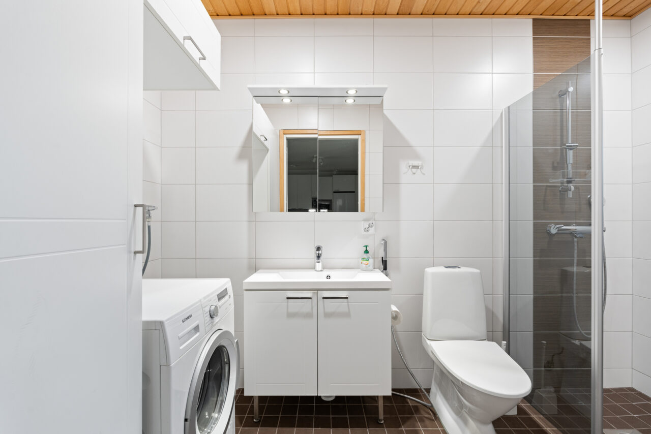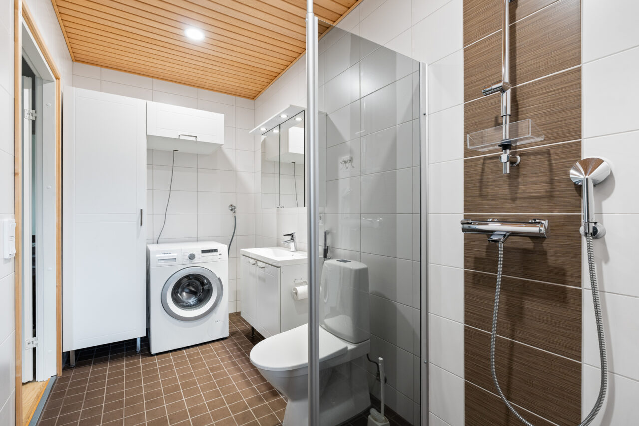 • Kylpyhuoneen seinämateriaali: kaakeli