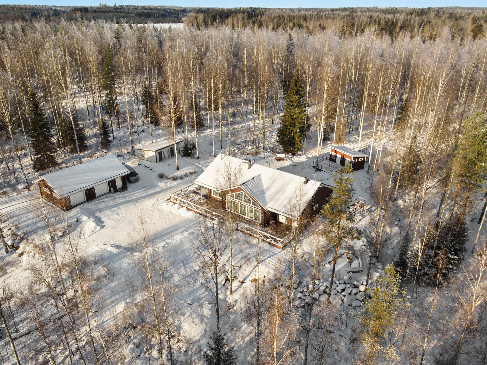 Kimarahirsitalo! 205×275 paksuisesta hirrestä tehty. Tämä hulppea linna on tehty upealle yli 1,5 ha tontille. Tässä kodissa on mahtavat sisätilat, oikea lapsiperheen unelma. Maalämmöllä hoidetaan talon ja 88m2 autotallin ja varaston lämmitys. Autotallin puoli on noin 70m2, ja varasto + wc 18m2. Bonuksena on pihasauna, vierastupa sekä puuvarasto. Extrabonuksena on yhteisranta neljän muun tilan kanssa. Yhteisranta on Alajärven rannassa, rannasta löytyy laituri ja venevalkamaoikeus.